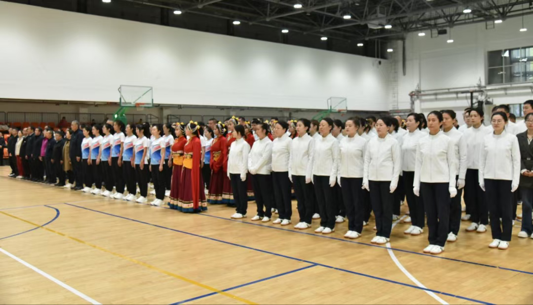 随后,文艺表演环节在热烈的气氛中拉开序幕。首先登场的是极具民族特色的藏舞表演,舞者们以舒展的舞姿和奔放的节奏,传递出浓郁的高原风情,赢得阵阵掌声。紧接着,伴随着舒缓的音乐,八段锦表演队伍缓缓起式,动作行云流水、招式张弛有度,充分展现了中华传统健身文化的独特魅力。广播操表演则以标准的动作、整齐的节奏,展现了人社干部严谨务实、协同一致的过硬作风与团队精神。最后,啦啦操花球舞将现场气氛推向高潮,队员们手持绚丽花球,以充满活力的舞步和灿烂的笑容,展现出青春的动感与激情,为整个表演环节画上圆满句号。