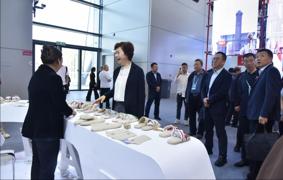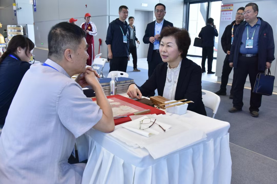 在甘肃展区,周丽宁逐一参观环县道情皮影、甘谷麻鞋、河州蛋雕、兰州牛肉面等非遗技艺展示展演。她对甘肃展位的内容呈现给予高度肯定,指出要以全国职业技能大赛为契机,用特色非遗技艺讲好甘肃故事、传播甘肃文化、展现甘肃形象,大力弘扬传统技艺,加快技能人才培养,助力甘肃特色技艺走向全国、迈向世界。